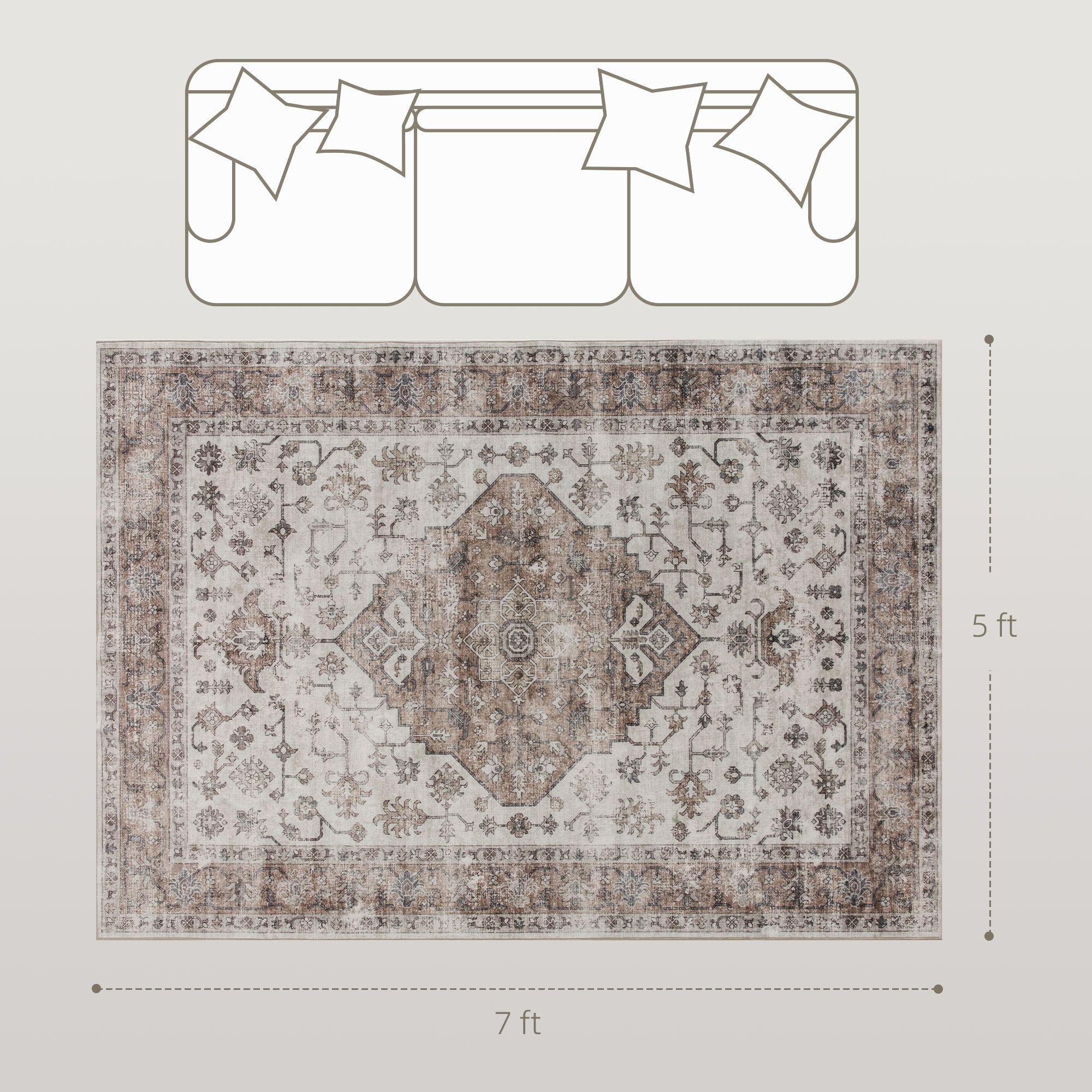 Step onto luxury with the HOMCOM flannel faux fur heat transfer carpet. This 5x7 vintage-style rug, featuring intricate patterns and beautifully stitched edges, is a treat for your feet and a charming addition to any high-traffic space like your living room, bedroom, or hallway. It's a breeze to keep clean and is machine-washable, making it excellent for pet owners.