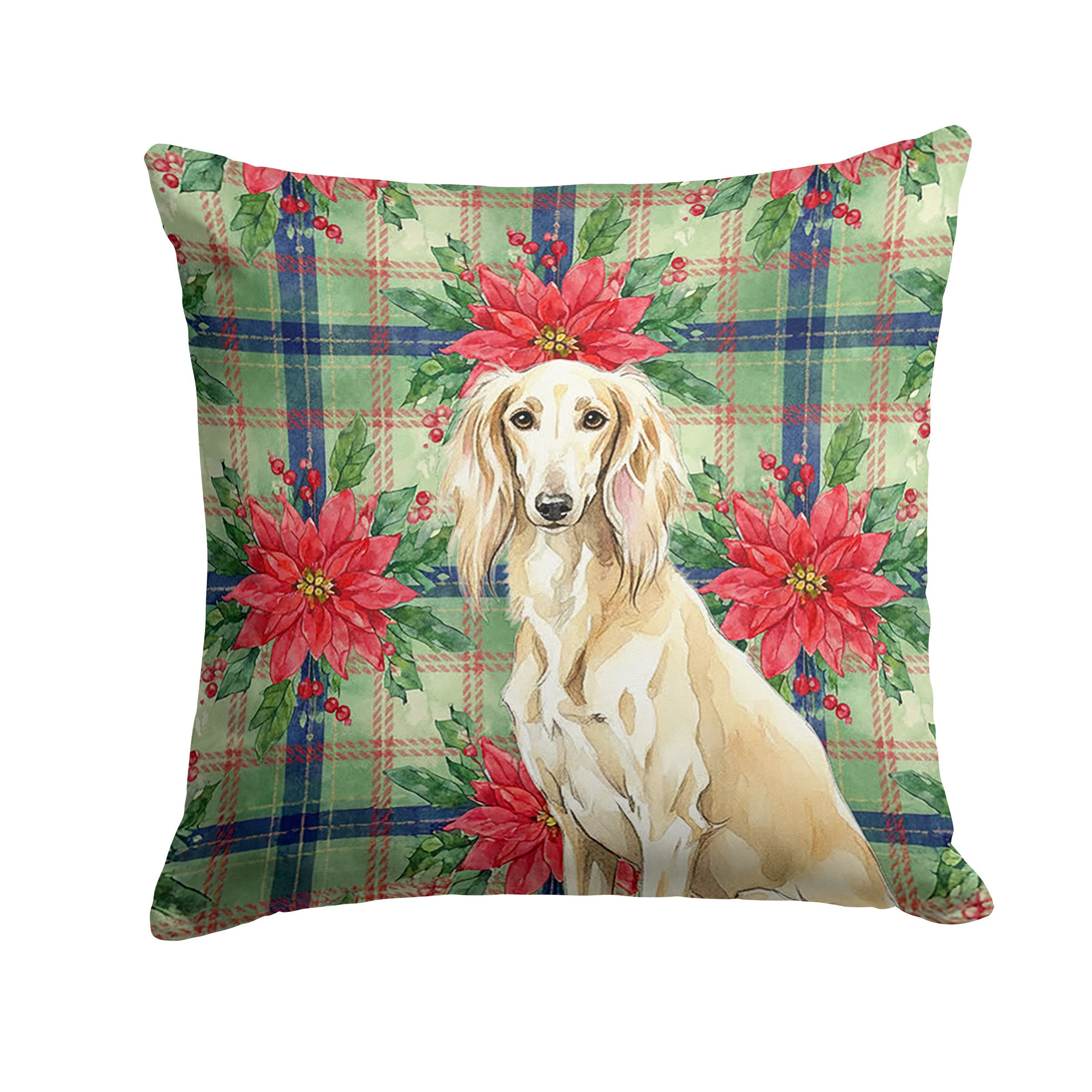 Throw Pillow featuring breed specific Saluki artwork. Celebrate Christmas with this Christmas Pillow. Revitalize your outdoor or indoor living space with Caroline's Treasures 18x18 Fabric Decorative Pillow. With a generously sized dimension of approximately 18 inches by 18 inches, this pillow makes a comfortable and aesthetic addition to any seating area. Made from a unique, water-resistant material developed by Caroline's Treasures, the pillow sham is 100% polyester fabric that's durable and ready to weather any condition. Its vibrant, full-color artwork will not fade over time as it is dyed with color-fast dyes. Whether you place it on your patio furniture, porch, veranda, or indoor couch, its soft canvas fabric ensures a cozy experience. The pillow is handcrafted in the United States, featuring a sham created from three pieces of fabric and a polyester insert for enduring shape and overstuffed comfort. Despite being robustly built to endure the outdoors, it is as soft and snug as your favorite indoor cushions. Please note, as all our pillows are handmade, sizes may vary slightly, adding to the charm of this unique decorative item.