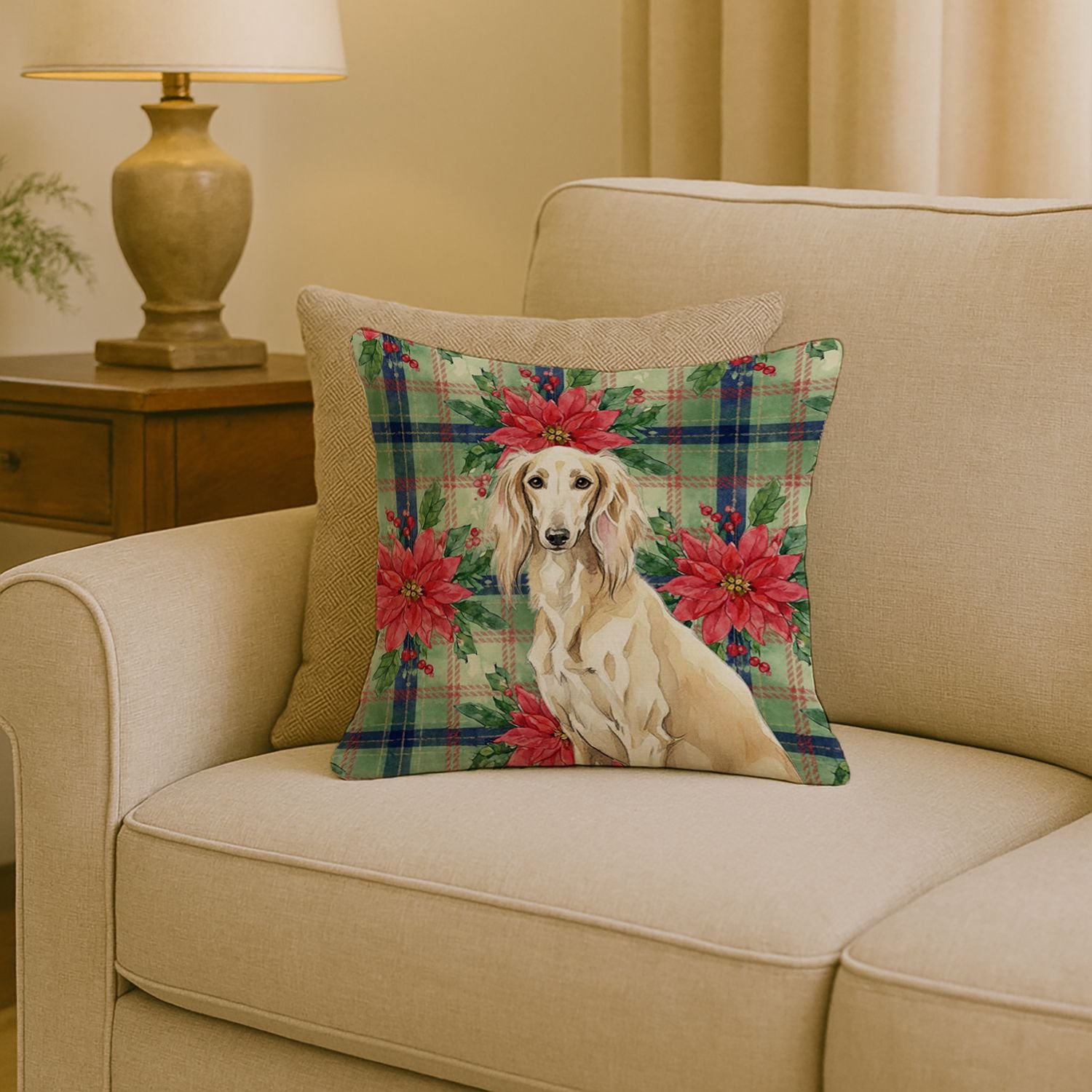 Home > Cream Saluki Christmas PoinsettIas Throw Pillow Decorative Indoor Outdoor Accent Cushion for Couch, Bed or Patio, 18Hx18W