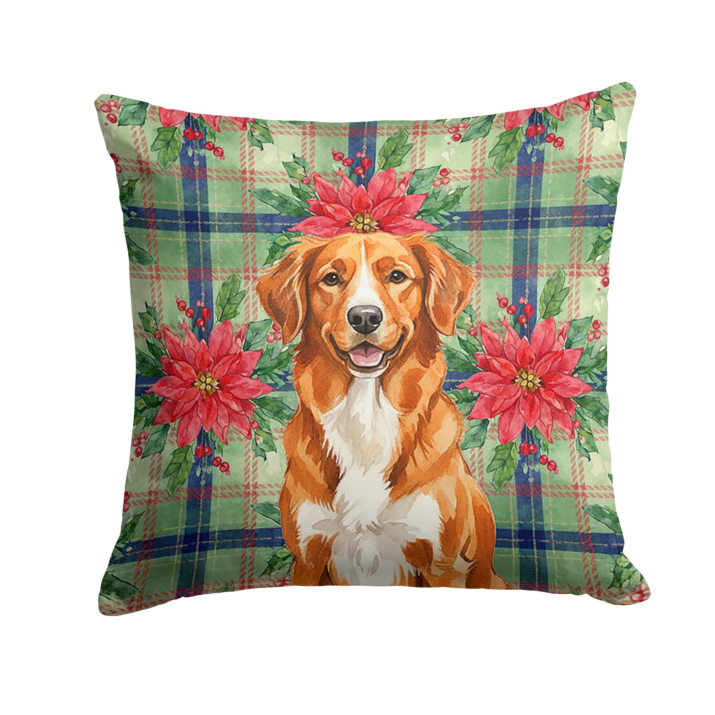 Throw Pillow featuring breed specific Nova Scotia Duck Tolling Retriever artwork. Celebrate Christmas with this Christmas Pillow. Revitalize your outdoor or indoor living space with Caroline's Treasures 18x18 Fabric Decorative Pillow. With a generously sized dimension of approximately 18 inches by 18 inches, this pillow makes a comfortable and aesthetic addition to any seating area. Made from a unique, water-resistant material developed by Caroline's Treasures, the pillow sham is 100% polyester fabric that's durable and ready to weather any condition. Its vibrant, full-color artwork will not fade over time as it is dyed with color-fast dyes. Whether you place it on your patio furniture, porch, veranda, or indoor couch, its soft canvas fabric ensures a cozy experience. The pillow is handcrafted in the United States, featuring a sham created from three pieces of fabric and a polyester insert for enduring shape and overstuffed comfort. Despite being robustly built to endure the outdoors, it is as soft and snug as your favorite indoor cushions. Please note, as all our pillows are handmade, sizes may vary slightly, adding to the charm of this unique decorative item.