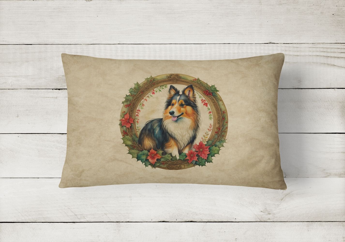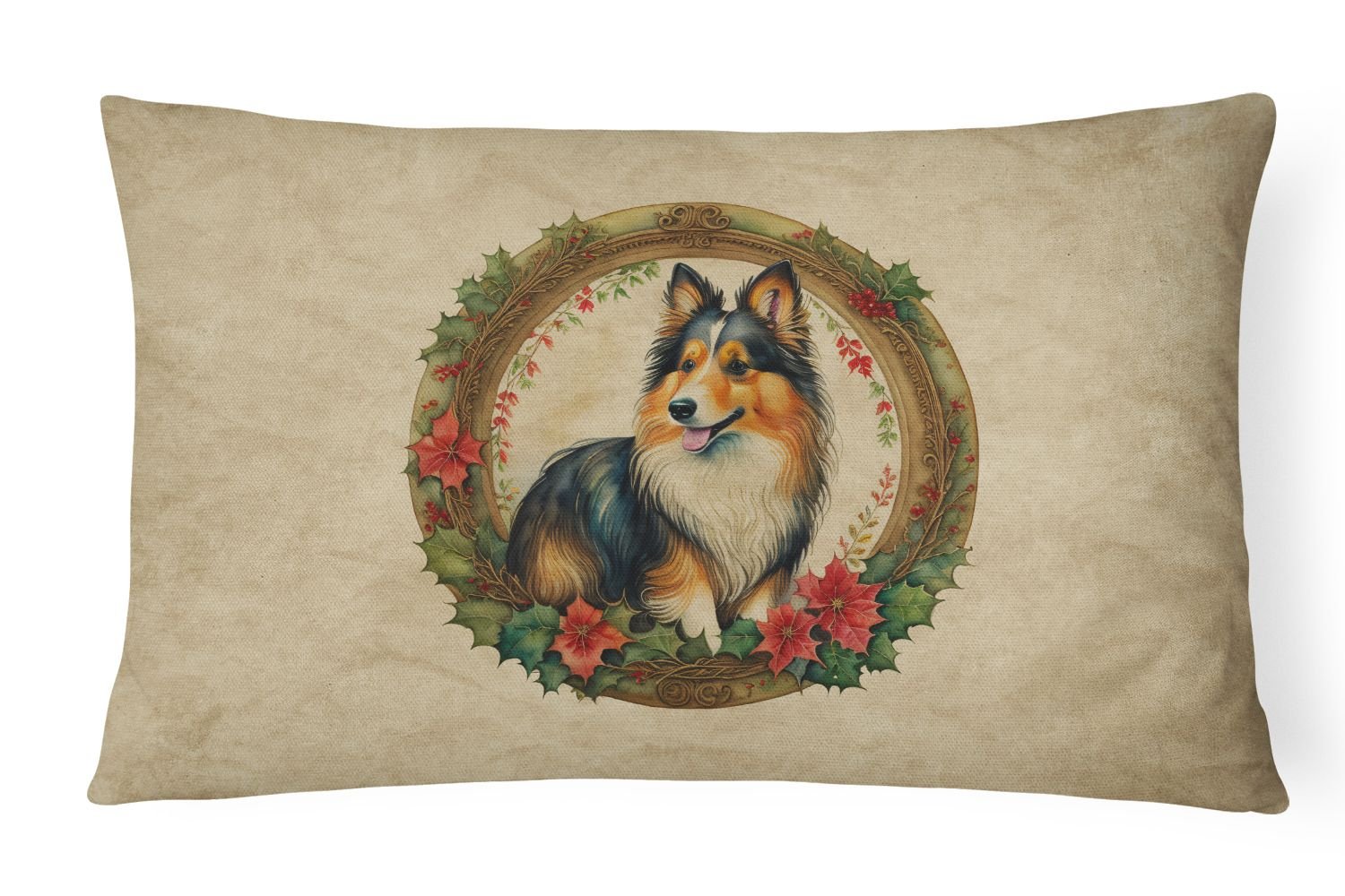 Throw Pillow featuring breed specific Sheltie artwork. Celebrate Christmas with this Christmas Pillow. Embrace the fusion of comfort and style with Caroline's Treasures Fabric Decorative Pillow. This 12x16 inch outdoor pillow is designed to complement your patio furniture, adding a splash of color and artistry to your outdoor setting. Constructed with a 100% Polyester Fabric pillow sham filled with a plush pillow form, this cushion is as comfortable as it is durable. Our outdoor pillow utilizes a novel fabric, meticulously woven for enhanced water resistance. This soft canvas material is equally suited for your indoor couch as well as outdoor settings such as the patio, porch, or veranda. To ensure enduring vibrance, we employ colorfast dyes resistant to fading even when subjected to weather elements. The making of this pillow involves the delicate sewing together of three fabric pieces to create a sham, into which a polyester insert is carefully placed. The result is an overstuffed pillow that tenaciously holds its shape. With both the sham and the pillow insert crafted in the United States, these handmade pillows are a testament to superior local craftsmanship. Note that as these pillows are handmade, sizes may slightly vary, enhancing their unique appeal. Enjoy comfort in style with Caroline's Treasures Fabric Decorative Pillow.