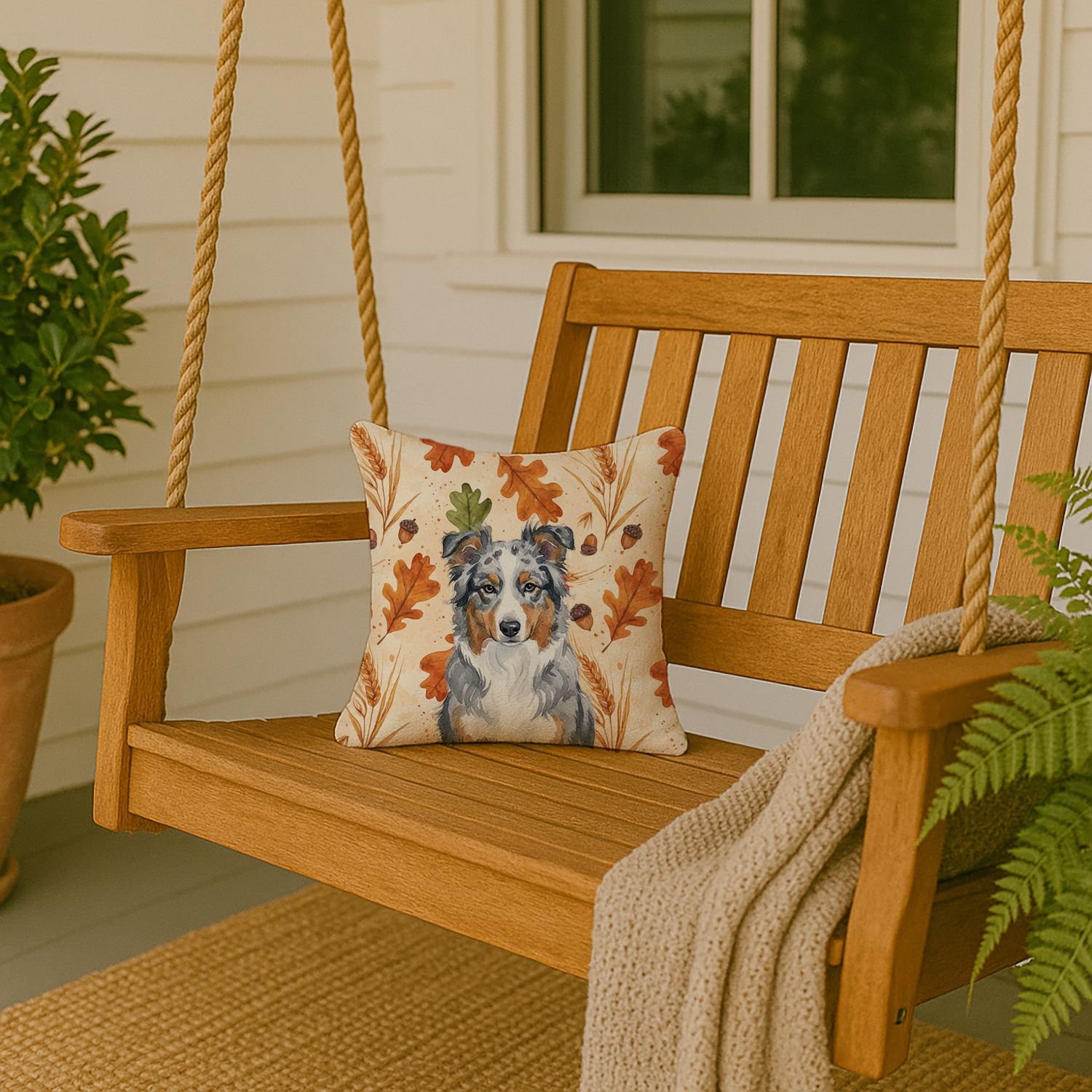 Blue Merle American Shepherd Heirloom Fall Throw Pillow Decorative Indoor Outdoor Accent Cushion for Couch, Bed or Patio, 14Hx14W