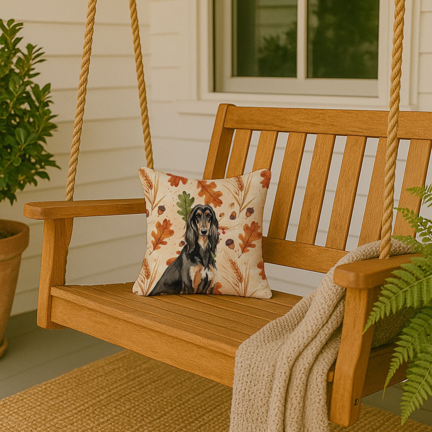 Black & Tan Afghan Hound Heirloom Fall Throw Pillow Decorative Indoor Outdoor Accent Cushion for Couch, Bed or Patio, 14Hx14W