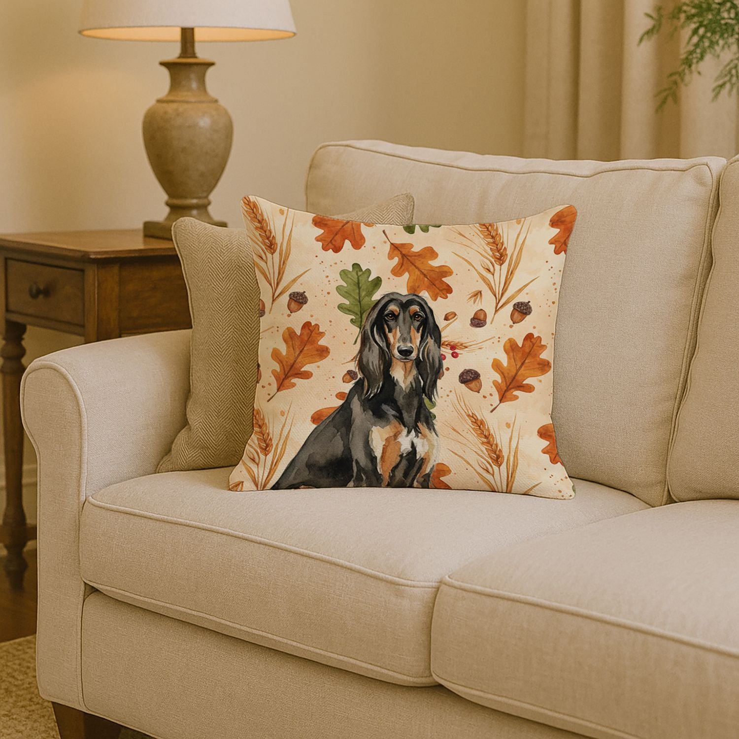 Home > Black & Tan Afghan Hound Heirloom Fall Throw Pillow Decorative Indoor Outdoor Accent Cushion for Couch, Bed or Patio, 14Hx14W